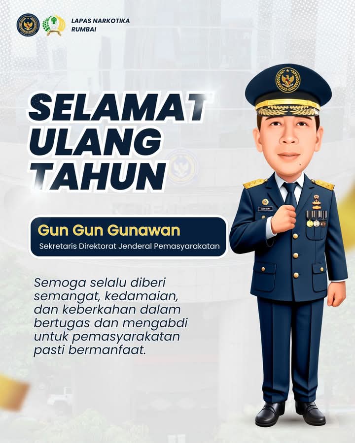 Keluarga Besar Lapas Narkotika Kelas IIB Rumbai Mengucapkan: Selamat Ulang Tahun Kepada Bapak Gun Gun Gunawan (Sekretaris Direktorat Jenderal Pemasyarakatan…