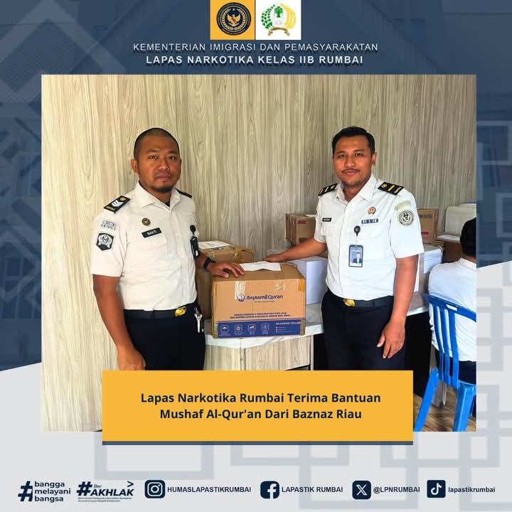 Pekanbaru — Lembaga Pemasyarakatan (Lapas) Narkotika Kelas IIB Rumbai mendapatkan bantuan mushaf Al-Qur’an sebanyak 42 buah, Kamis (2/4/2026). Bantuan tersebut…