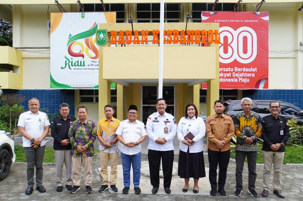 Rombongan KPU Provinsi Riau diterima langsung oleh Kepala Badan Kesbangpol Provinsi Riau, Jenri Salmon Ginting, didampingi sejumlah pejabat di lingkungan Kesbangpol Provinsi Riau, antara lain Linda Marlina Siagian dan Tengku Rahadian.